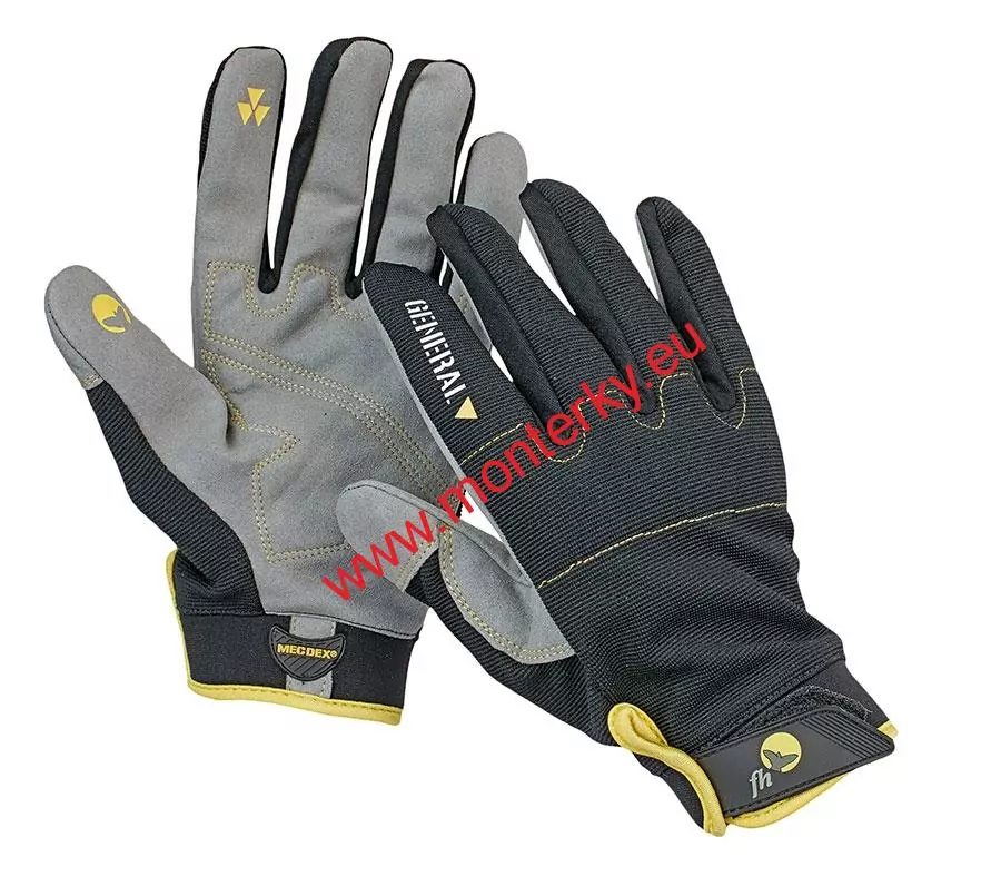 Rukavice z umělého semiše v dlani, Spandexu na hřbetu s chrániči kloubů, se stahovací manžetou na suchý zip a podšívkou v dlani.