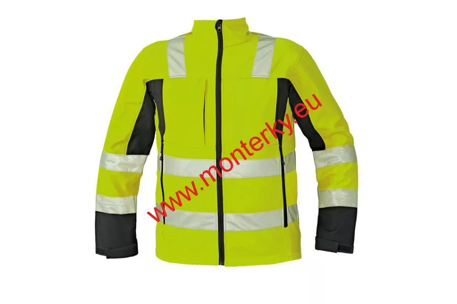 Popis: pánská HI-VIS softshellová voděodolná bunda; reflexní pruhy přes ramena, okolo boků a rukávů; 2 postranní kapsy na zip, 1 náprsní kapsa na zip; stahování ve spodní části; velcro nastavení šíře rukávů.