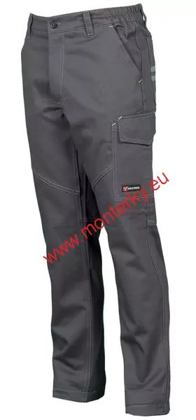 - Unisexové celoroční stretchové kalhoty. Zapínání na zip s plastovým knoflíkem, dvě klasické přední kapsy, dvě postranní kapsy s klopami, LOCK SYSTEM, kapsa na svinovací metr, dvě zadní kapsy, jedna otevřená, jedna s klopou na suchý zip, trojité švy v rozkroku a na vnitřní straně nohavic. Kontrastní vložky a prošívání, reflexní proužky na zadní kapsa.