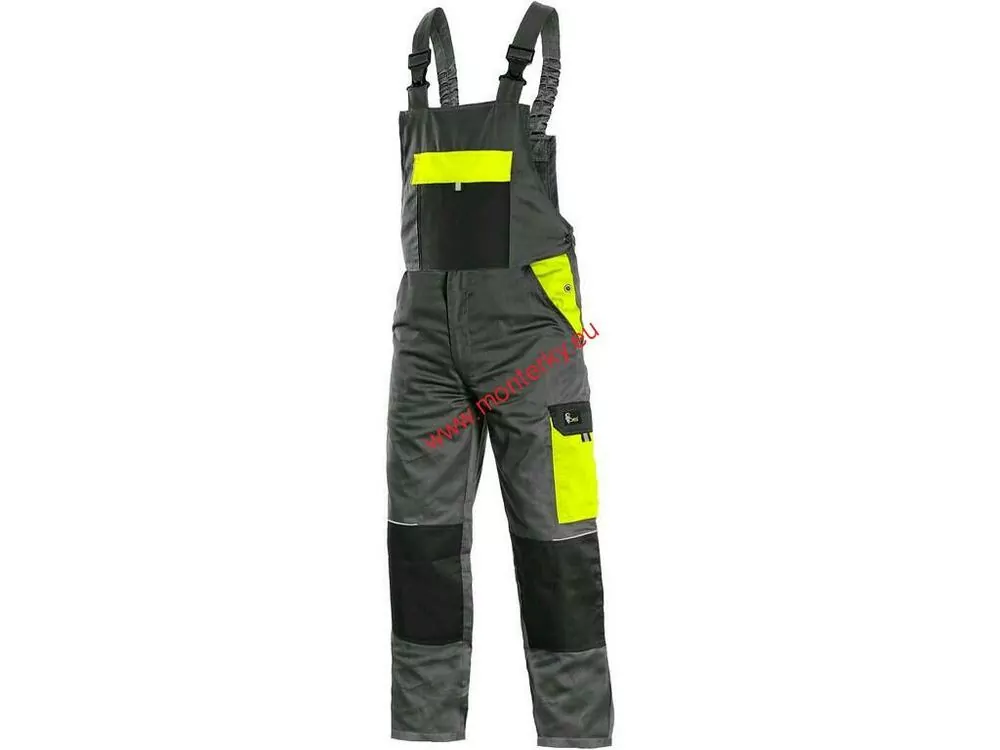 Pánské montérkové kalhoty s náprsenkou, z lehkého materiálu, náprsní kapsa s klopou, přední klínové kapsy, boční kapsa s klopou, kapsa na skládací/svinovací metr, zdvojená kolena, zadní jednoduchá kapsa, šle vzadu na gumu. Díky odlehčené gramáži vhodné pro práci nejen v letním období, ale také celoročně ve vytápěných provozech. Doporučené použití: stavebnictví, strojírenství, lehký průmysl, automobilový průmysl, logistika, skladová manipulace, spedice, autoservisy, údržba, montáže, zemědělství, učiliště, zahrada, hobby